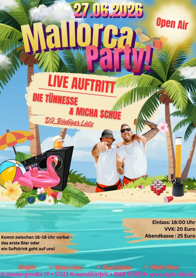 Mit zwei Top Acts auf der Bühne ist für beste Mallorca Stimmung gesorgt. Erlebt live on Stage die Tünnesse und Micha Schue. Mit ihren Hits: "Leiche" und "Sternhagelvoll".